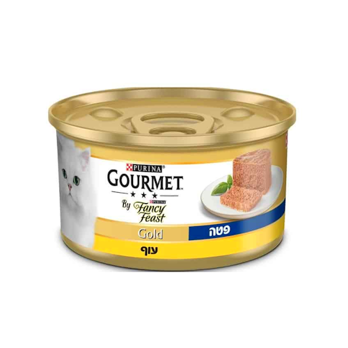 Fancy Feast Gourmet Gold פטה עוף הוא מזון רטוב יוקרתי עם מרקם פטה רך, נימוח ונעים במיוחד – בטעם עוף עסיסי שהחתול שלך יאהב מהביס הראשון.