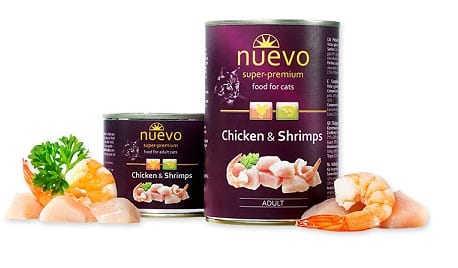 שימורי סופר פרימיום לחתול על בסיס עוף ושרימפס.