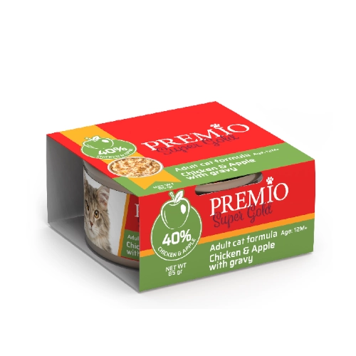 שימורי פרמיו סופר גולד עוף ותפוח ברוטב 85 גרם