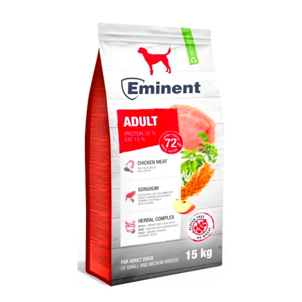 אמיננט בוגר בינוני 15 ק”ג, מזון יבש מלא לכלבים בוגרים מגזע קטן/בינוני.