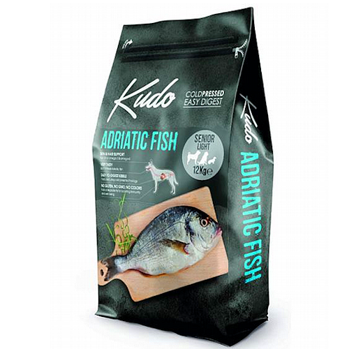 KUDO ADRIATIC FISH SENIOR/LIGHT הינו מזון יבש מלא ומאוזן המיועד להזנת כלבים מבוגרים וכן לכלבים בעלי עודף משקל. הודות לטכנולוגיית הכבישה הקרה, ללא תוספת של צבעים או ריחות מלאכותיים, מזון זה קל מאוד לעיכול.