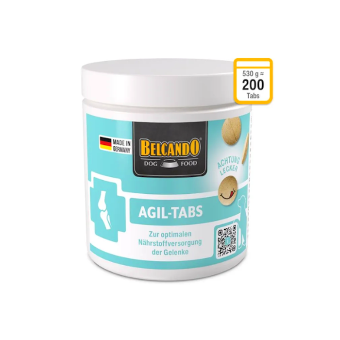 BELCANDO AGIL-Tabs משלימים את תזונת הכלב שלך בחומרי רכישה וחומר גלם על בסיס צמחי הידועים בהשפעתם התומכת על תפקוד רקמות החיבור, הסחוס והמפרקים.