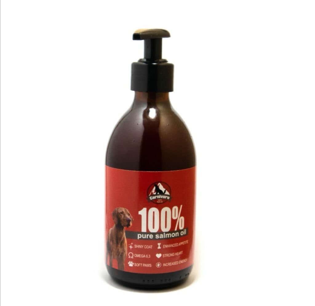 - שמן סלמון של קרניבור הוא מאה אחוז שמן טהור שתורם מאוד לבריאות הכלב.